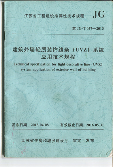 蘇JG/T057-2013《建筑外墻輕質(zhì)裝飾線條(UVZ)系統(tǒng)應(yīng)用技術(shù)規(guī)程》
